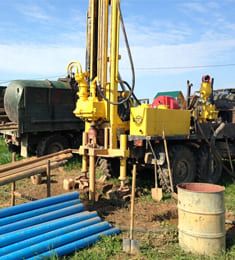 После бурения необходимо произвести обсадку трубами. Самые популярные трубы – НПВХ: 125*5мм, 140*7мм, ПНД: 125*7мм, металлические диаметром: 133, 159, 219 и 325мм.
