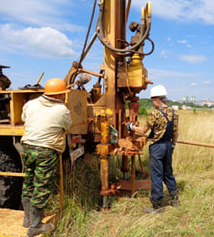 Монтажники при помощи специализированного оборудования делают «прокол» грунта, чтобы понять особенности почвы, глубину водоносного горизонта, каким способом нужно бурить.